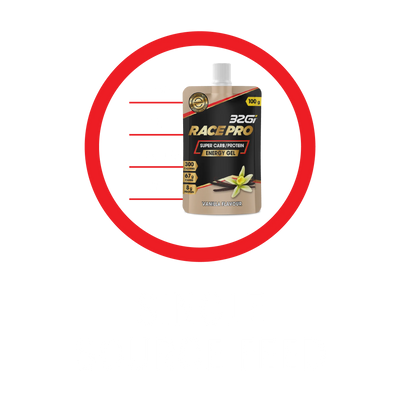 32Gi®’s Race Pro 300 Gel is designed to provide a tasty high-calorie feed. It’s a superior gel, utilising a quality carbohydrate blend, and protein.